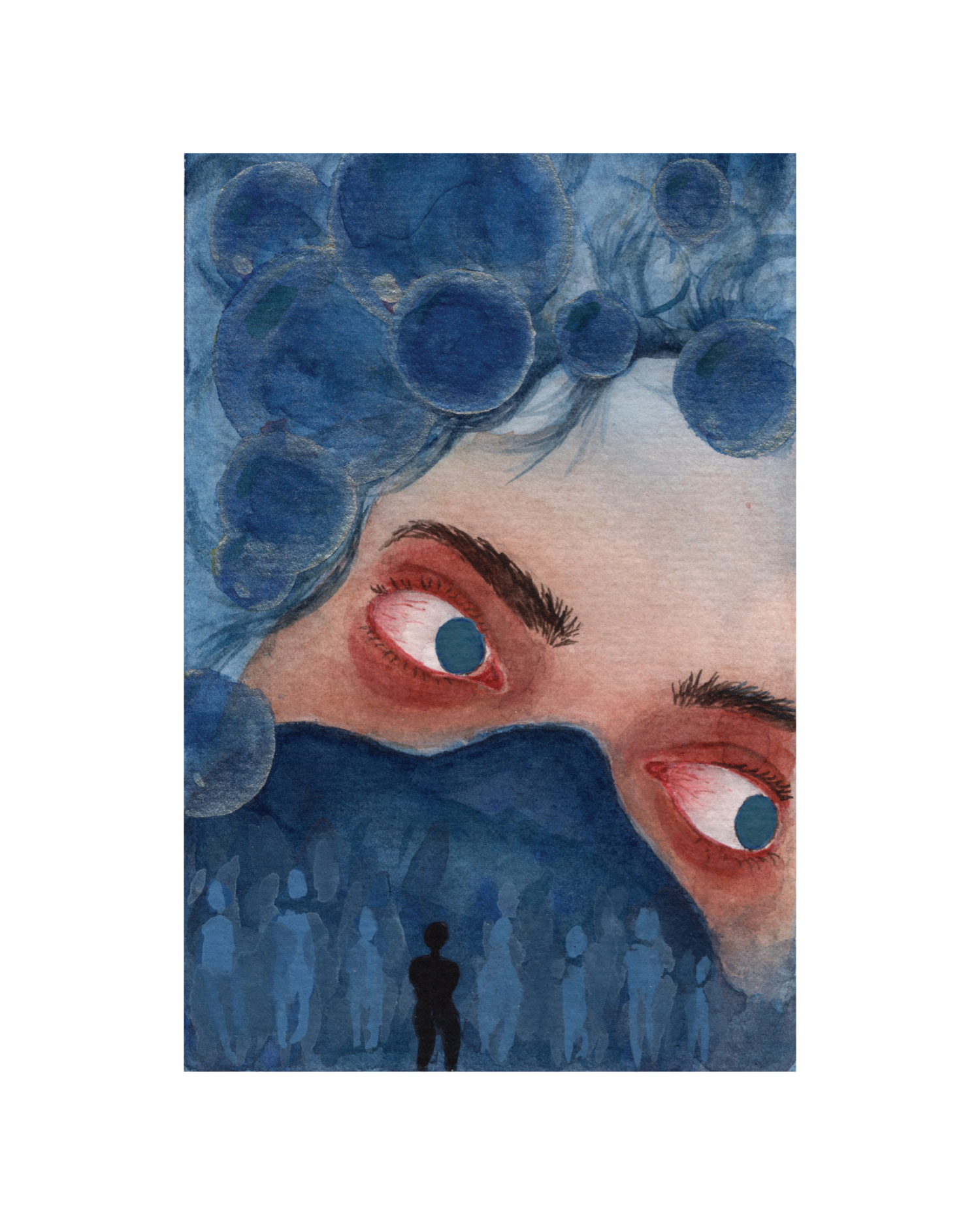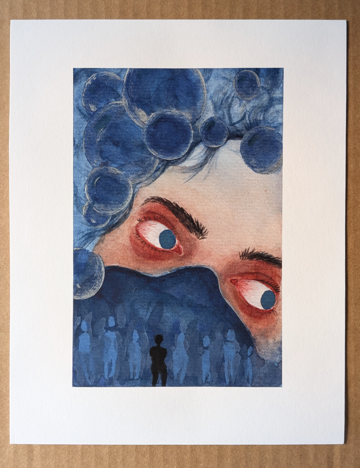 I painted Bubble to explore themes of lonliness and community in being Covid Cautious.