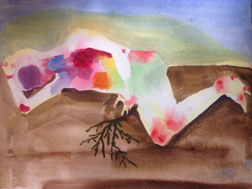 11 x 14 giclee print on archival fine art paper.  Human-made Watercolor image, somatopsychic art piece.