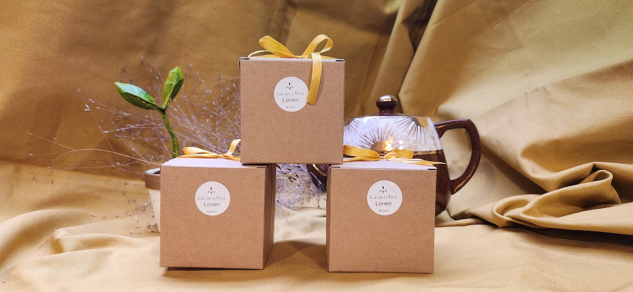 A golden tree sprout in a little pot origami was made for the Lorien perfume. The golden sprout represents the gift Galadriel gave to Samwise Gamgee in Lord of the Rings. At the end of the book Sam plants the silver seed in the Shire which grows into a golden tree.