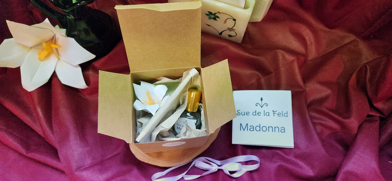 Organically crafted perfume using only natural ingredients comes with a Mini Madonna Lily origami. This perfume comes in a 10ml bottle with roll-on application. The fragrance is stabilized in a carrier oil for optimal skin nourishment.